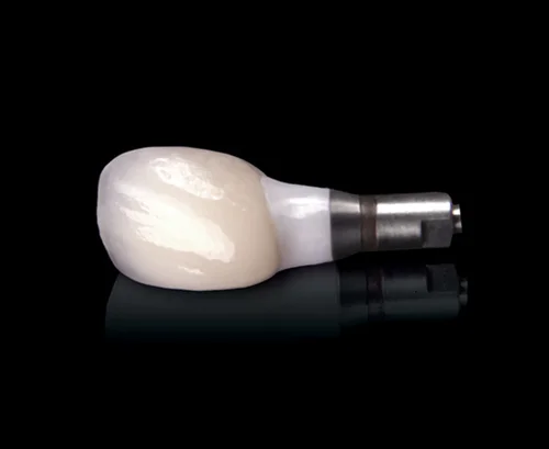 Implant restorations are the standard of care when treating edentulous or partially edentulous patients. Implant-based restorations offer excellent stability, function, and aesthetic results. Commonly used abutment materials are titanium, zirconia, and gold hue titanium.